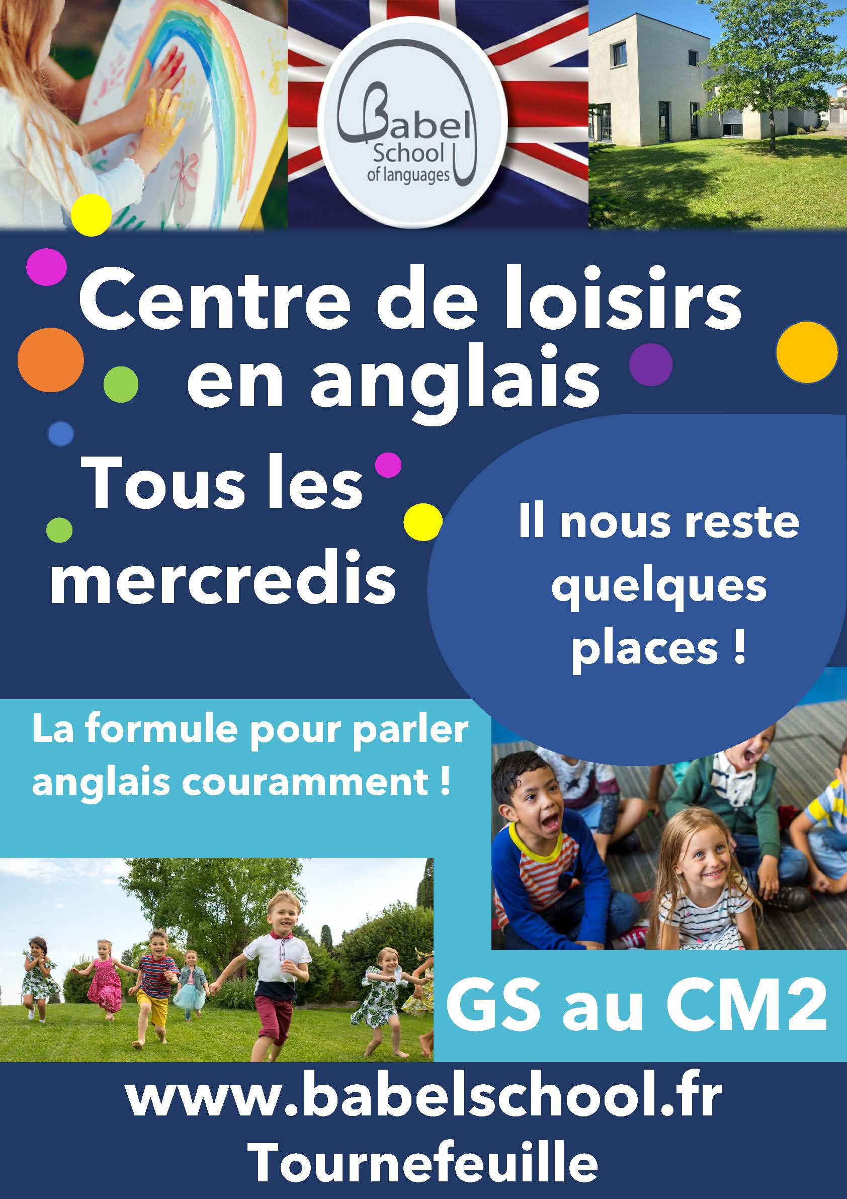 Le saviez-vous? Babel School propose aussi un centre de loisirs en anglais à Tournefeuille tous les mercredis de l’année scolaire! Animé par une enseignante anglophone, les activités sont 100% en anglais. Nous accueillons les enfants à partir de 11h30 (horaires d’arrivée flexibles, repas pris sur place) et jusqu’à 18h00. Les activités sont variées: jeux, activités en extérieur, loisirs créatifs, pâtisserie, culture anglosaxonne… Ils ont également un cours d’anglais Cambridge dans l’après-midi. Il reste quelques places pour 205-2026, l’inscription est possible en cours d’année scolaire, dans la limite des disponibilités. INSCRIPTION CENTRE DE LOISIRS
