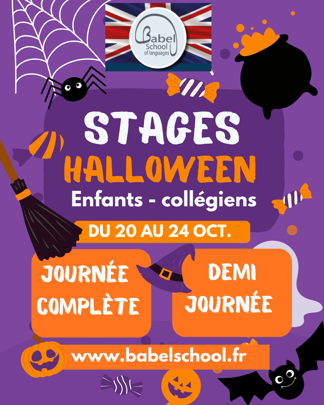Venez fêter Halloween tout en apprenant l’anglais! Nous proposons des stages pendant les vacances de la Toussaint pour enfants et ados du 20 au 24 octobre 2024 pour tous.